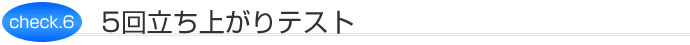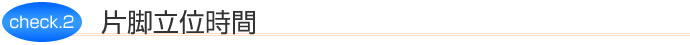 静的バランス能力の指標です。目を開けたままで片方の足で立ち、保持していられる時間を計測します。時間が長いほど歩行の安定度が増します。年齢により基準値は異なりますが、15秒を目標にしましょう。下肢筋力の指標でもあります。