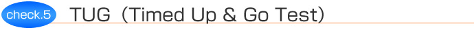 筋力、バランス、歩行といった日常生活能力との関連性が高く、総合的な移動能力の指標です。椅子に座っている状態から立ち上がり3m前方のコーンを回って戻り、再度椅子に座るまでの時間を測ります。TUGタイムが13.5秒以上の方は転倒リスクが高まると言われています。